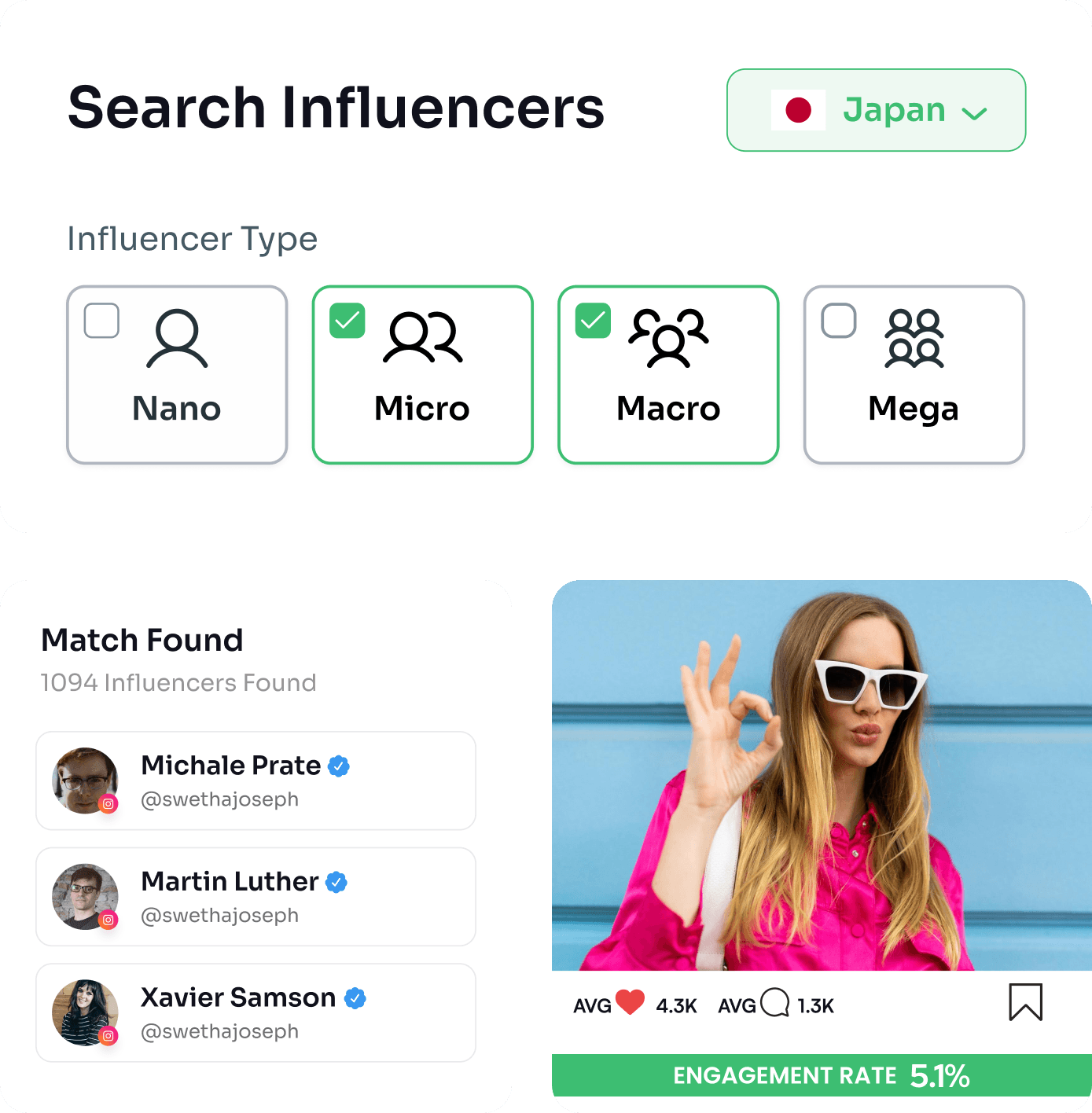 Keyword & Filter Options: Refine your search by follower count, engagement, and niche.