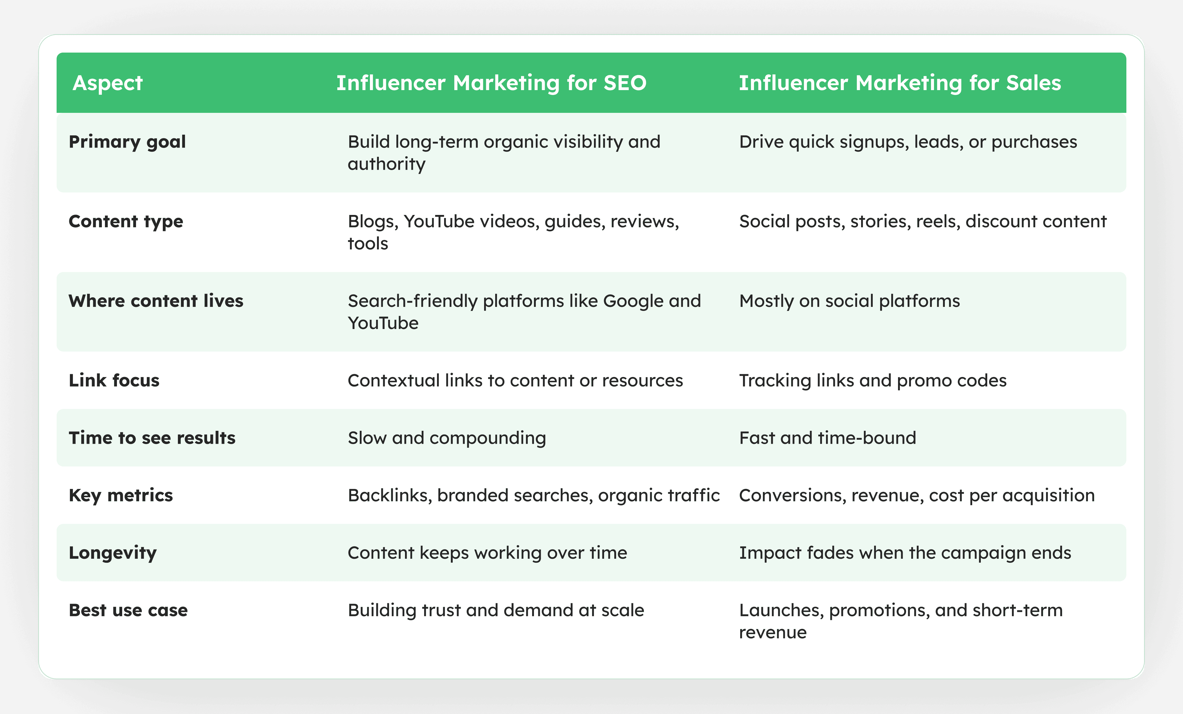 Influencer Marketing for SEO vs Influencer Marketing for Sales