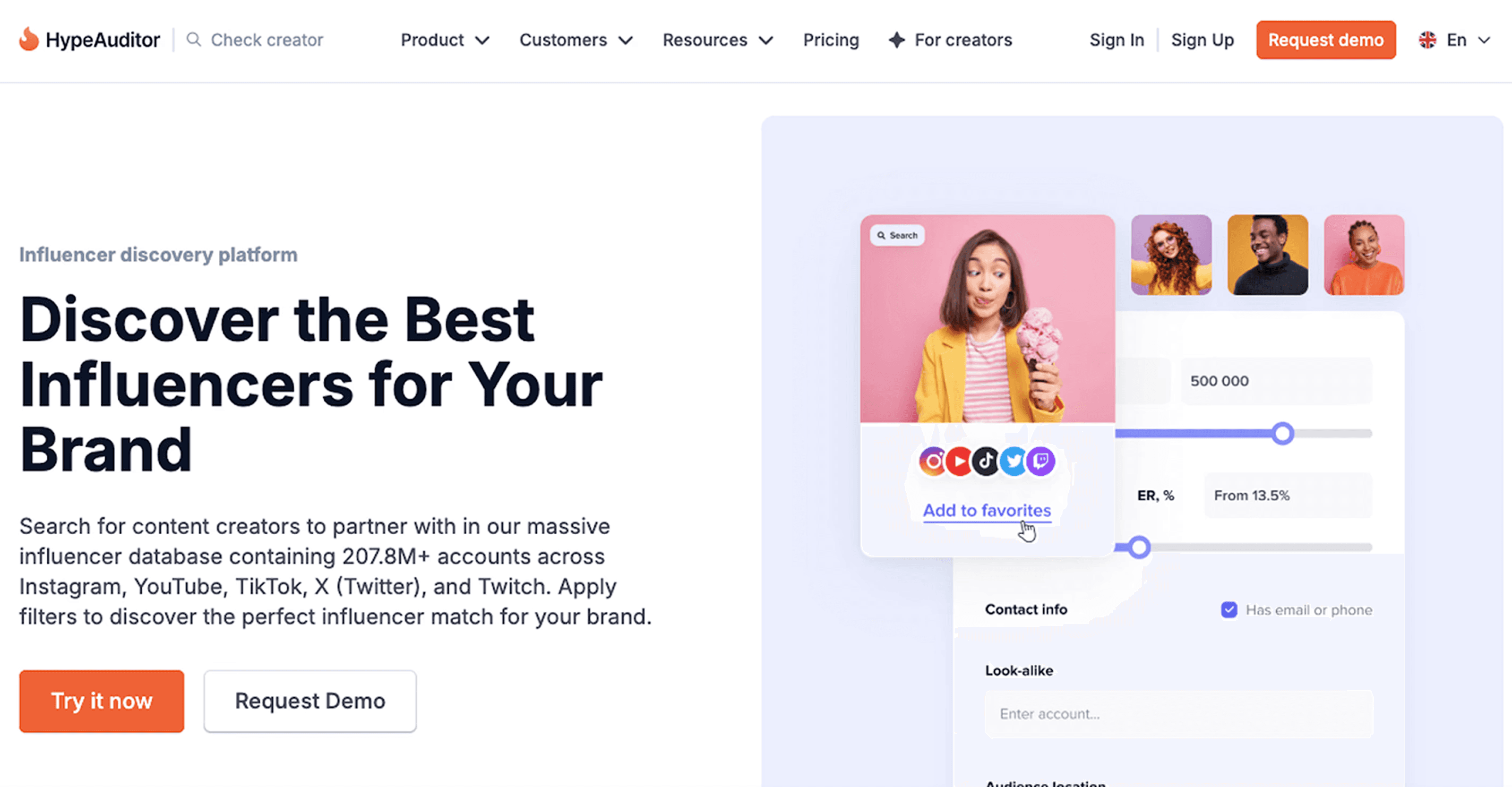 HypeAuditor stands out for its enormous reach, hosting over 207 million influencer profiles across platforms like Instagram, TikTok, YouTube, Twitch, and X (formerly Twitter). Its wide coverage makes it ideal for global campaigns that demand scale and diversity.