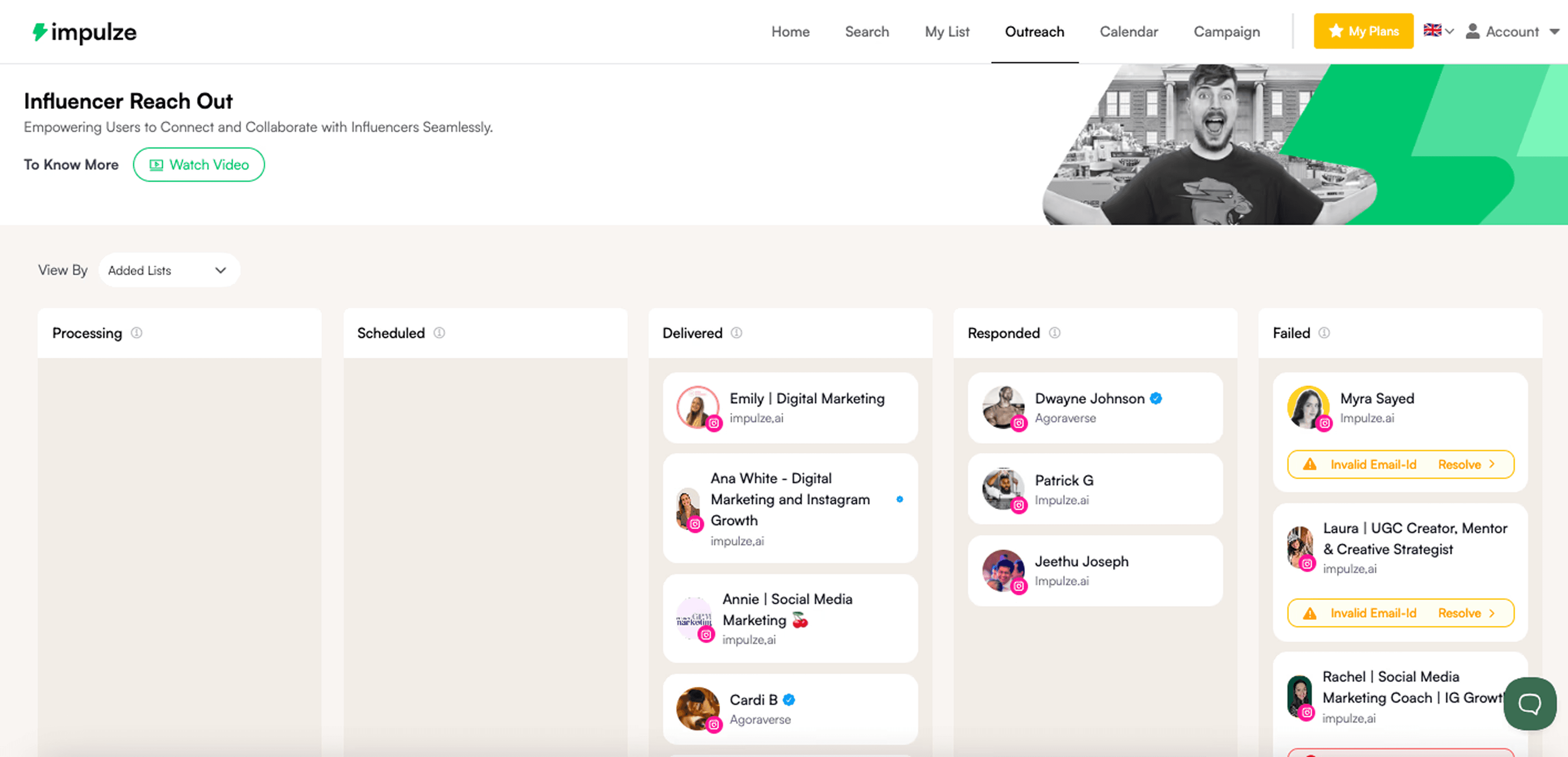 Beyond influencer search, analysis, and outreach, impulze.ai also helps in managing influencer data and relationships. So be it tracking multiple contracts, deliverables, or sticking to posting schedules, it all becomes manageable with a centralized system.