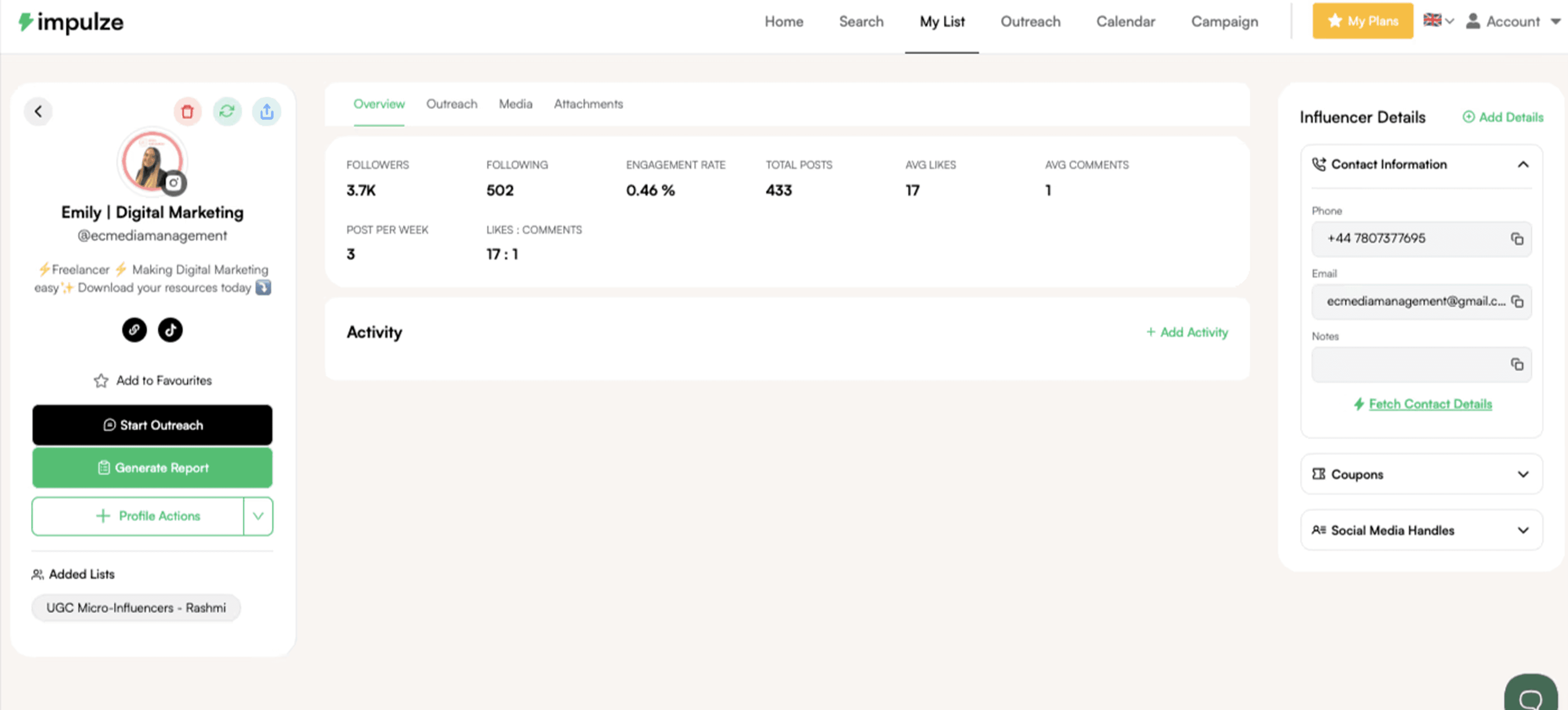 This is where impulze.ai can be your partner. This influencer marketing platform can streamline your worlflow while also saving 10s of hours every week. Here’s a glimpse of how you can use impulze.ai for your lifestyle influencer marketing: