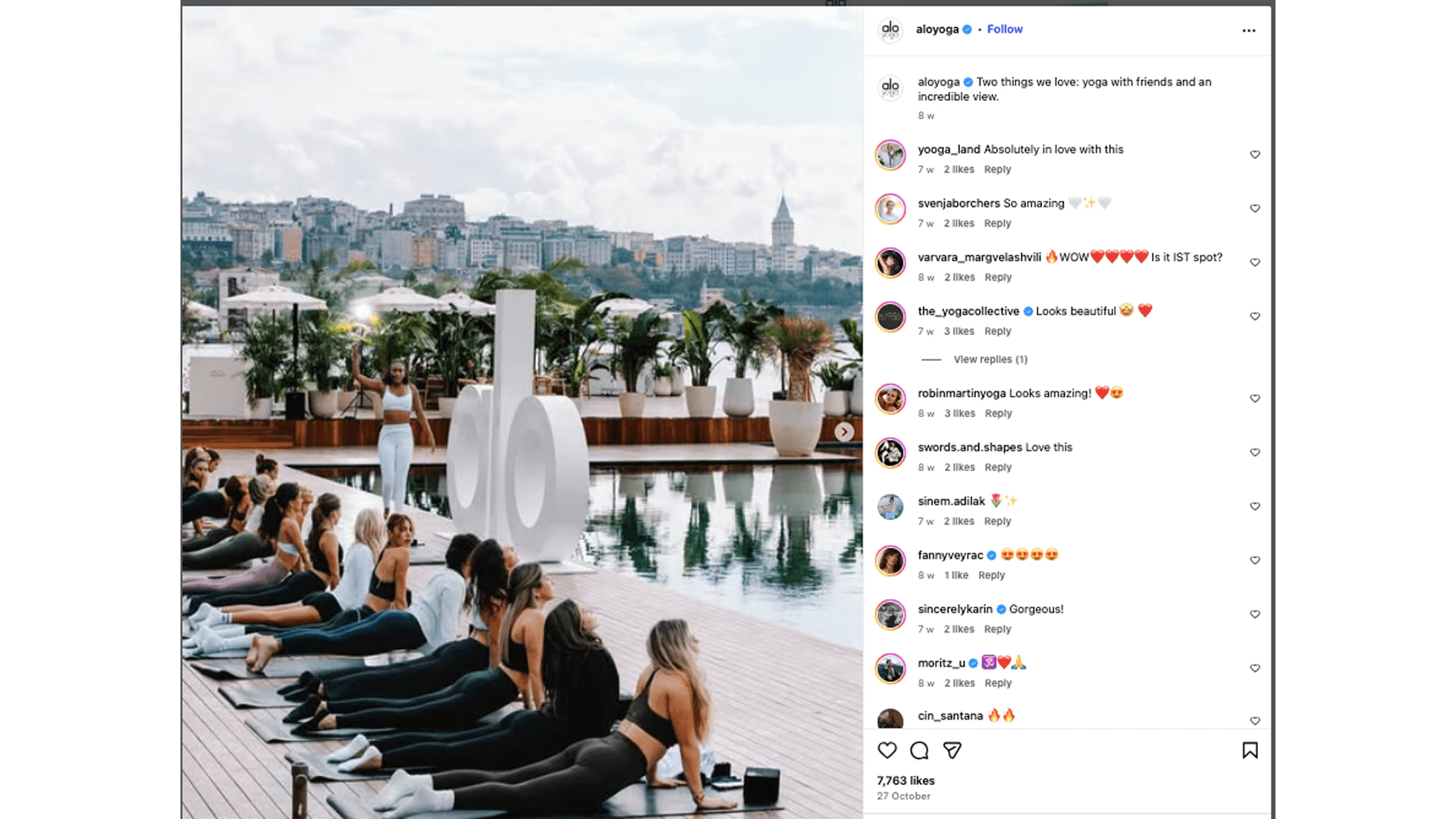Alo Yoga regularly invites creators to in-person yoga sessions, studio openings, and wellness events. There’s no hard posting requirement. Weeks later, you’ll see creators casually wearing Alo in their daily routines or tagging the brand during workouts, because it’s already part of their lifestyle.