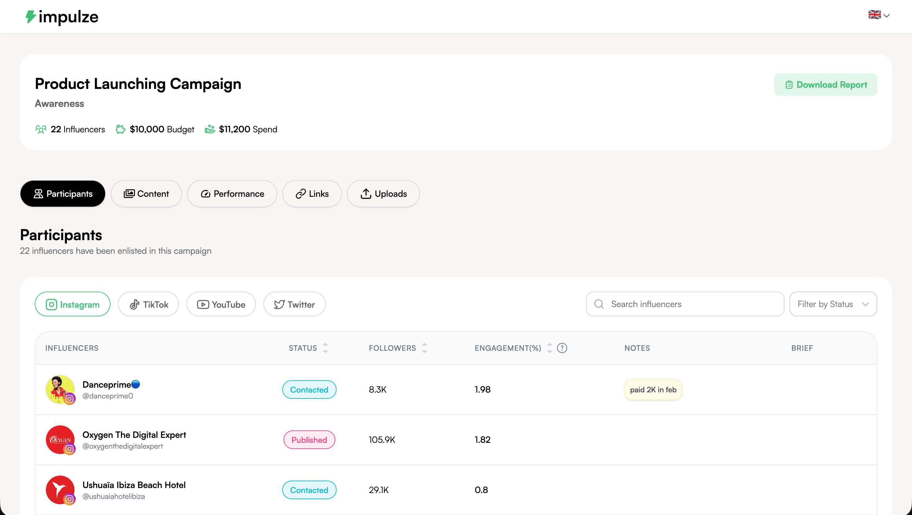 For instance, impulze.ai's campaign analytics pulls post performance automatically — reach, engagement, story views, and conversion data — into a dashboard you can share with clients without rebuilding it every time. The data is there when the campaign ends, not two hours after you've chased it down.